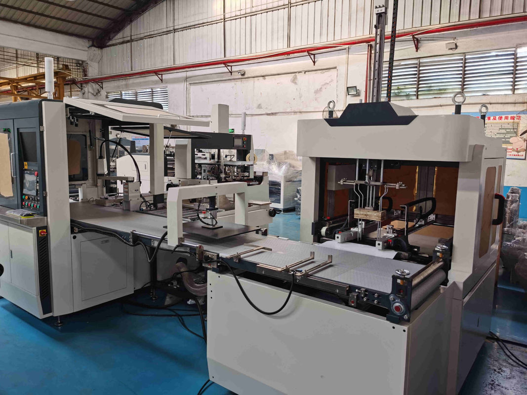 Chế tạo hộp cứng hoàn toàn tự động phù hợp với những khách hàng có đơn hàng lâu dài và ổn định.Nó bao gồm dán góc hộp, dán giấy, định vị hộp & hộp, bọc và ép hộp cùng một lúc.