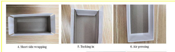 Tối đa 30 hộp bìa cứng có thể được sản xuất mỗi phút, làm tăng đáng kể hiệu quả sản xuất hộp bìa cứng và tiết kiệm chi phí sản xuất.sản xuất tiêu chuẩn hóa cải thiện đáng kể chất lượng sản phẩm.